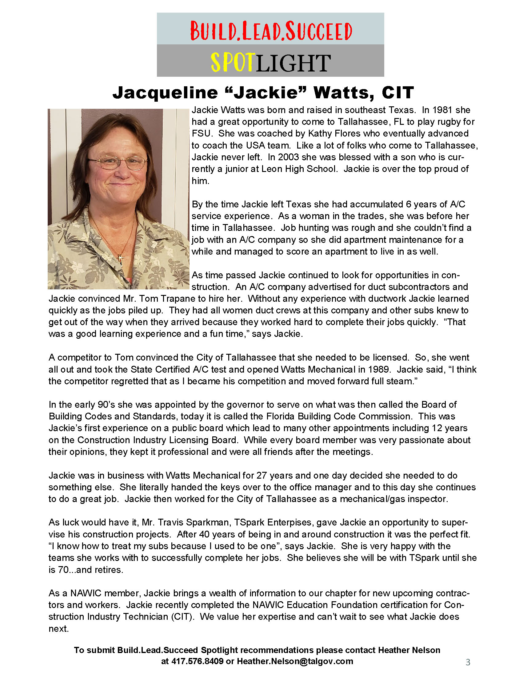 Congrats to our very own Jackie Watts for her recent "Build.Lead.Succeed Spotlight" in the NAWIC Magazine!